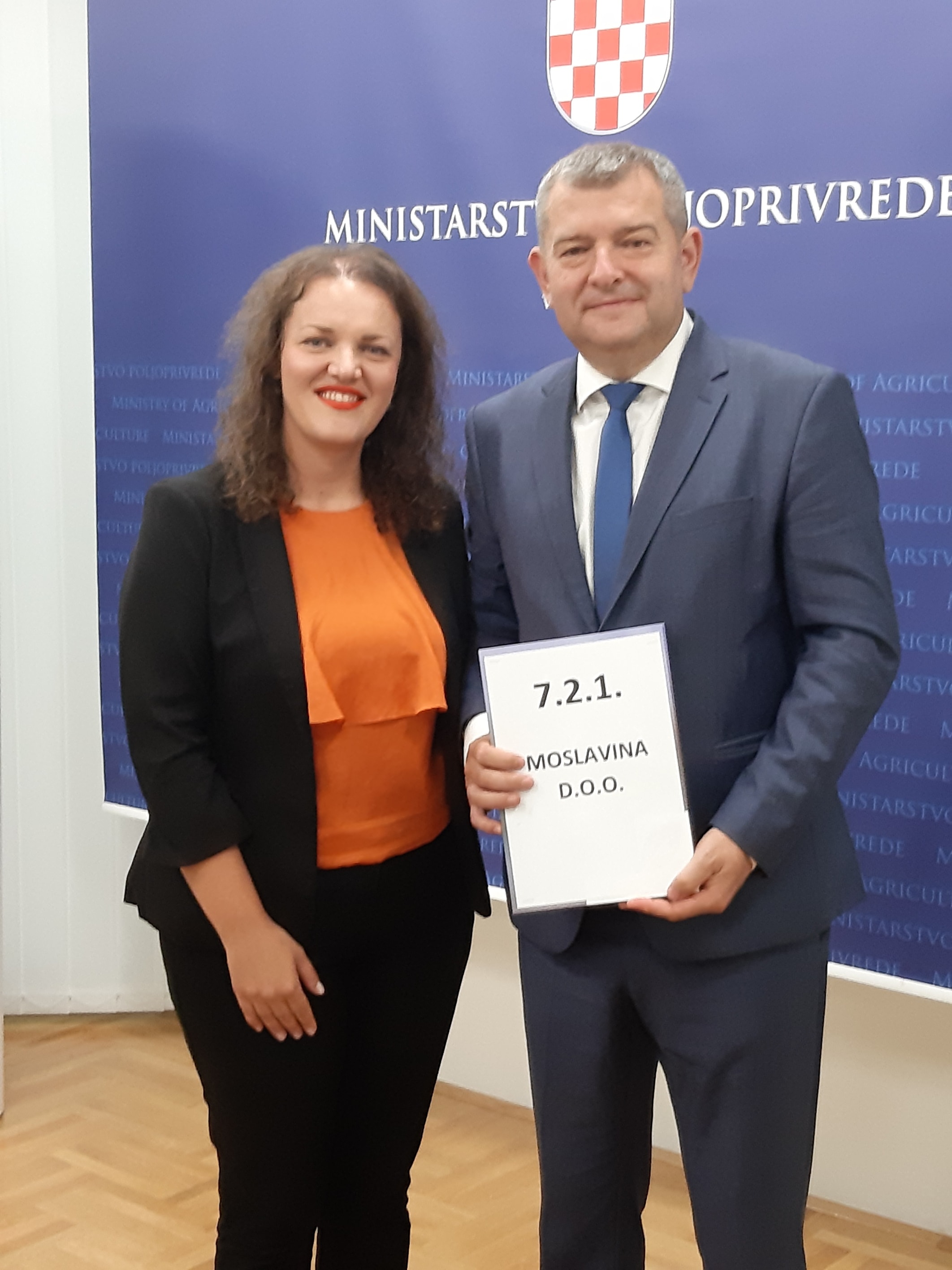 Direktor Moslavine d.o.o., mr. Mijo Šepak, u četvrtak je, 18. srpnja 2019. godine, u Ministarstvu poljoprivrede svečano potpisao Ugovore o financiranju za tip operacije 7.2.1. - “Ulaganja u građenje javnih sustava za vodoopskrbu, odvodnju i pročišćavanje otpadnih voda“ u provedbi mjere M07 „Temeljne usluge i obnova sela u ruralnim područjima“ iz Programa ruralnog razvoja Republike Hrvatske za razdoblje 2014. – 2020.