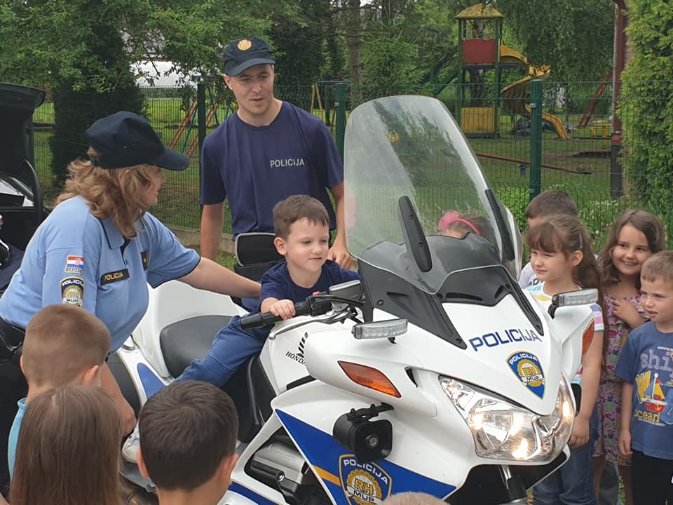 Djelatnici policijske postaje Kutina sa načelnicima Predrag Fitnić i Alen Bilanđija došli su djeci predškolskog uzrasta pojasniti kako se treba ponašati u prometu i kako se paziti raznih opasnosti.